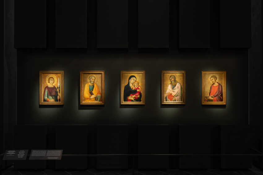 Installation view of Siena: The Rise of Painting, 1300–1350, on view through January 26 at the Metropolitan Museum of Art. Photo by Eileen Travell, courtesy the Met.