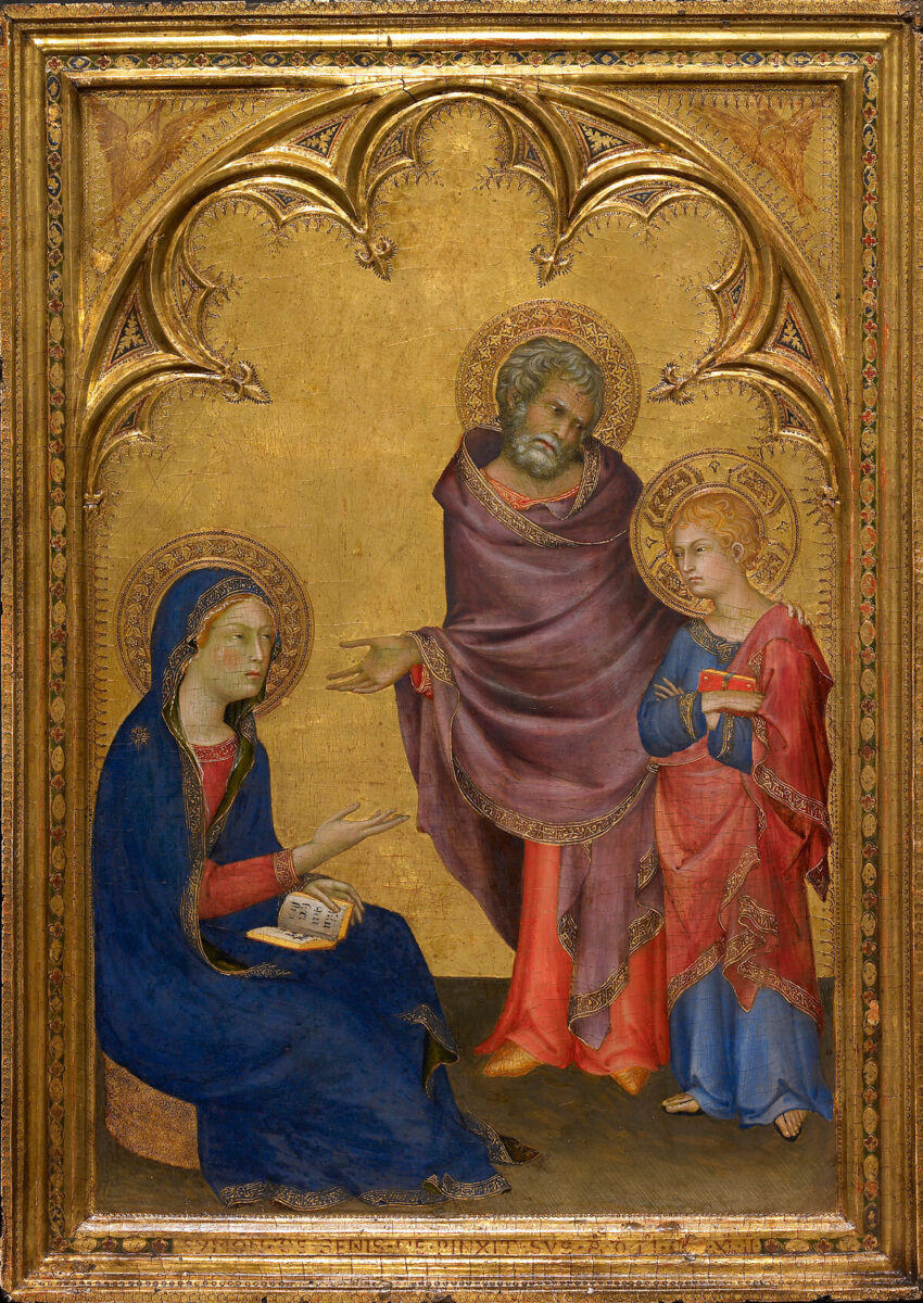Or so it seemed last week when we went to see Siena: The Rise of Painting, 1300–1350 at the Metropolitan Museum of Art, where everyone was peering at flickering tapers of red-and-gold flame that, so the placards claim, are fourteenth-century paintings on panels. Many of the paintings are displayed in cases rather than on the wall, so we saw not just the painted images but also the wood that bears them. Like Jesus on his donkey, the paintings came here riding their own humble supports. At the sight of these works, all of New York was stirred, or at least all of us, New Yorkers and tourists, who had come that Saturday afternoon, and looking back and forth from each other to the image of Jesus or Mary or the shimmering lake surface that is a piece of green fabric woven in the second quarter of the fourteenth century, we exclaimed: “Who is this?” (Matthew 21:10, Quis est hic?) Or, in my girlfriend’s words, “What the fuck even is this?”