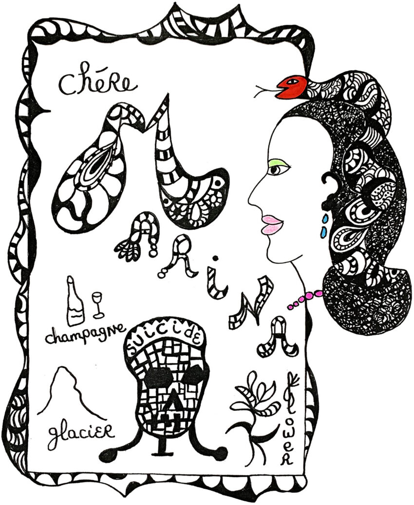 Each of Saint Phalle's writings and drawings can be read and understood on its own, but when they come together—like the art and letters I present here—we get a bigger picture of Saint Phalle’s inner world. It is a picture I have put together, but who’s to say it wasn’t already there and just needed a different way of reading and looking?