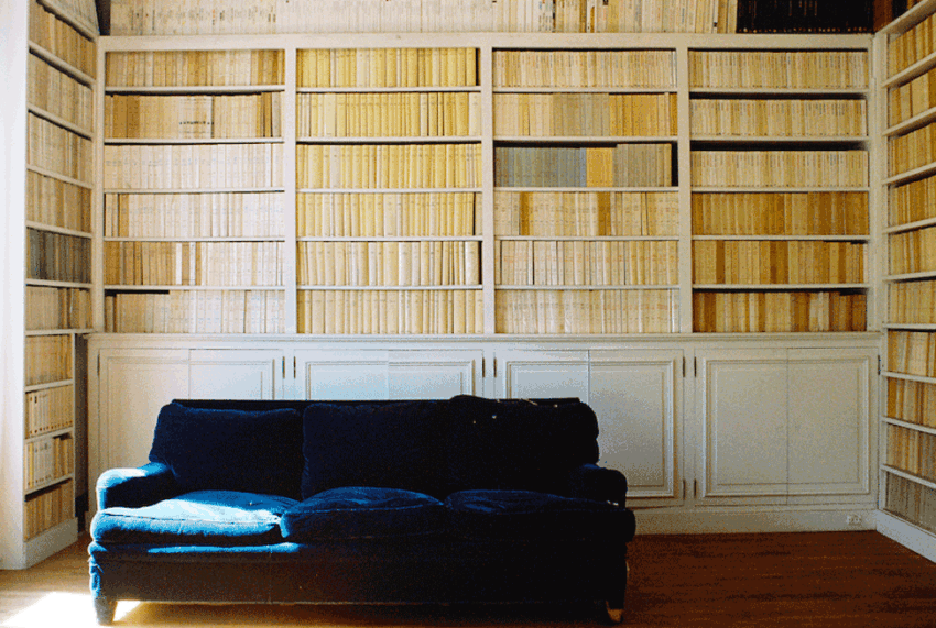 The books were methodically organized in series of monochromes. Having multiple copies of the same book didn’t matter: duplicates could even be displayed in the same row as long as they matched. There was the off-white section of the Collection Blanche, the French publisher Gallimard’s iconic series of contemporary literature. There were the cyan rows of Librairie Félix Alcan, no longer in print. There were the vermillion volumes from Flammarion, the daffodil-colored Fayard editions. Well into his eighties, he spent sleepless nights perched on his library ladder, rearranging his books. “Every passion borders on the chaotic,” wrote Walter Benjamin in his famous essay on book collecting, “Unpacking My Library,” “but the collector’s passion borders on the chaos of memories.” My father could survey the contents of his collection in his head, and reply, without hesitation, when asked if he owned a specific title. But he would never let anyone borrow it. “You’ll leave a hole!” he would scream when someone attempted to pull out a book. (If his collection were disrupted, his sense of himself might also come unbound.)