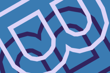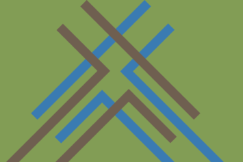 Graphic of overlapping letter G’s in mint green and navy blue
